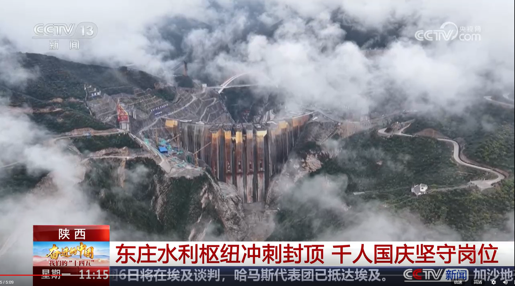 央视网:[奋进的中国 我们的“十四五”]陕西 东庄水利枢纽冲刺封顶 千人国庆坚守岗位